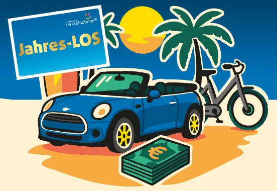 Mit dem Jahres-LOS der Deutschen Fernsehlotterie sichert ihr euch ein ganzes Jahr lang jede Woche Gewinnchancen auf attraktive Preise: von Geldgewinnen von bis zu 1 Million Euro über monatliche Sofortrenten bis hin zu zahlreichen weiteren Haupt- und Sonderziehungen.